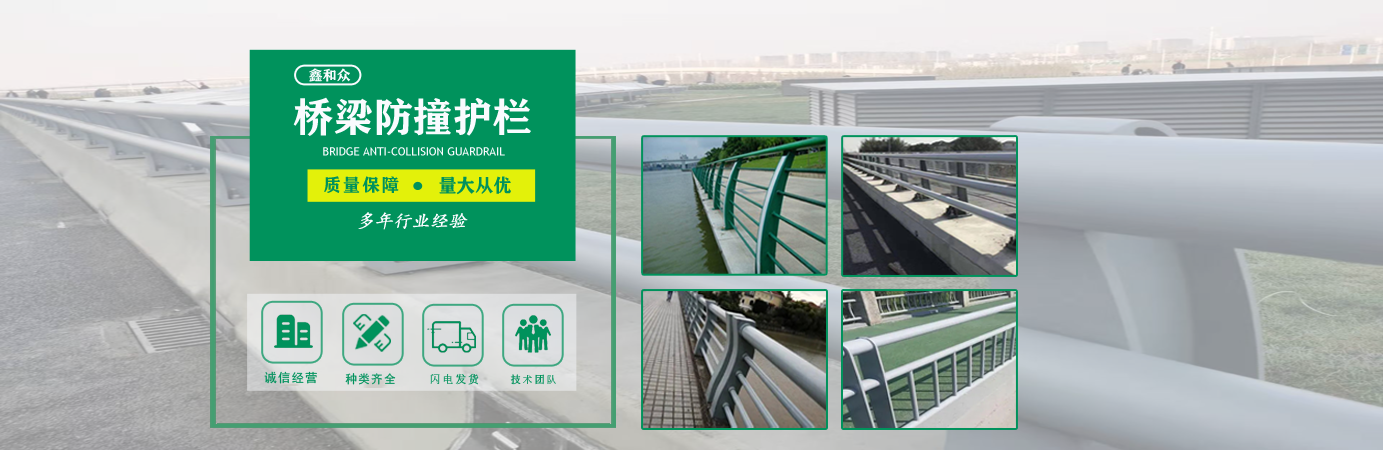 山東鑫和眾金屬制品有限公司主要產品有防撞護欄,橋梁護欄,道路護欄,河道護欄,不銹鋼護欄等護欄。提供設計方案,一站式定制,包您滿意價格優惠,歡迎來電咨詢! 公司常年從事銷售護欄防撞護欄,橋梁護欄,道路護欄,河道護欄,不銹鋼護欄,橋梁鋼護欄,河道燈光護欄等。產品廣泛應用于橋梁、河道、旅游景區、道路、公路、公園、小區、景觀、道路防撞等領域?! 」井a品均采用優質不銹鋼材料,符合相關標準。各種型號不銹鋼復合管及護欄,質量嚴格把控。產品強度高、耐腐蝕、焊接牢固、抗沖擊、性能好,防撞護欄結構簡單、美觀實用大方。 歡迎前來訂購!...